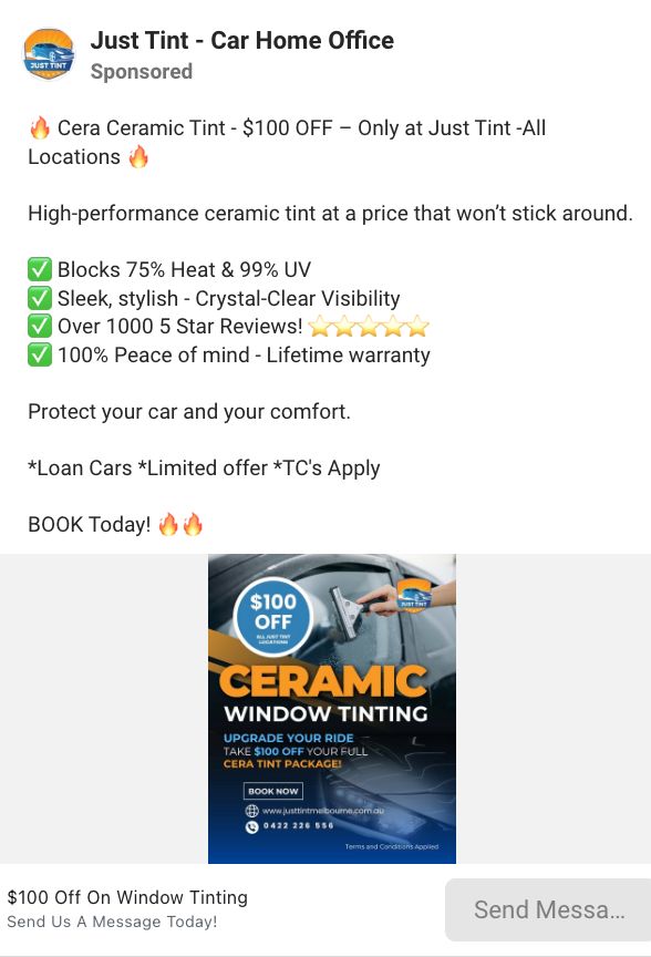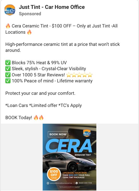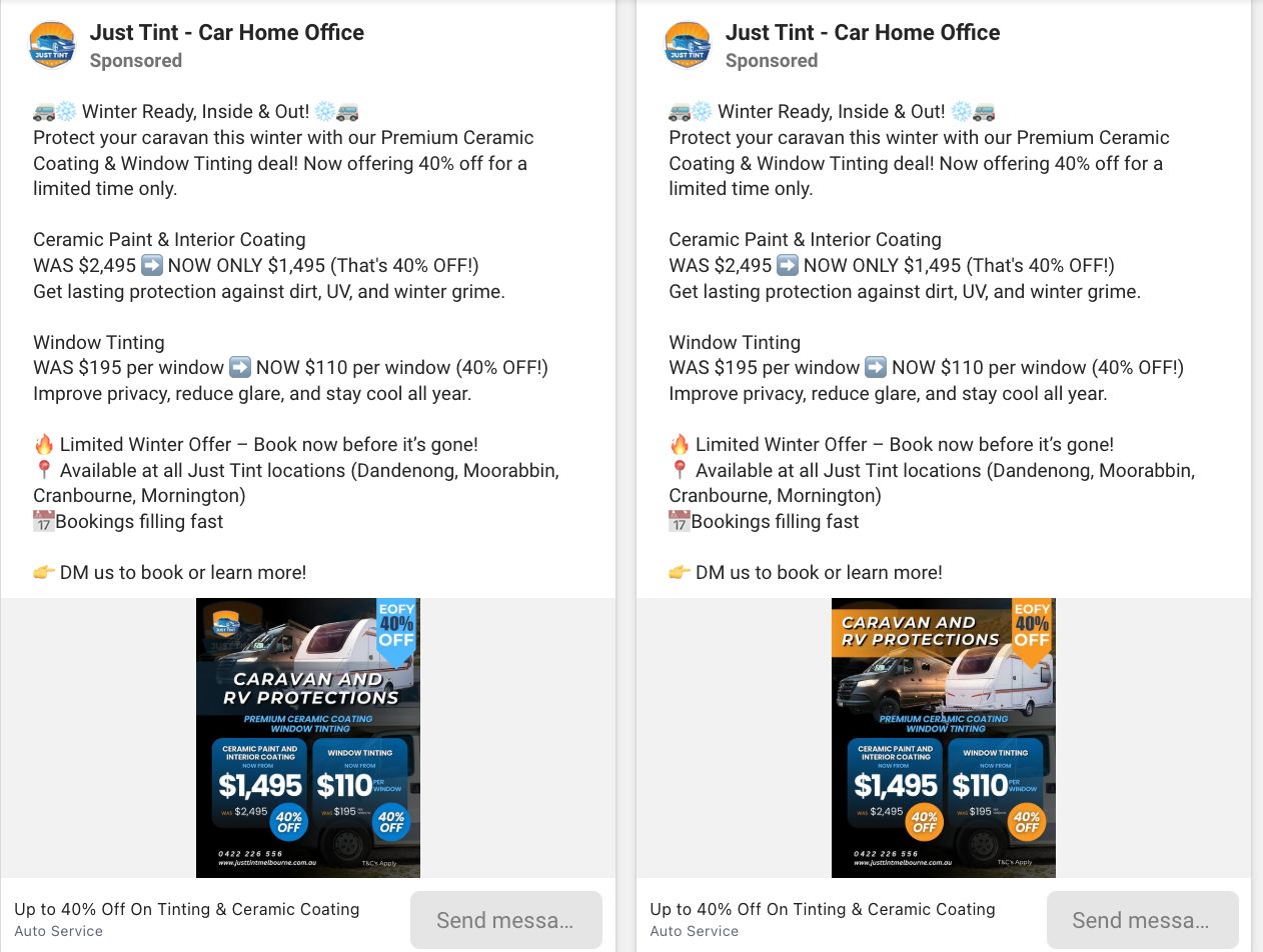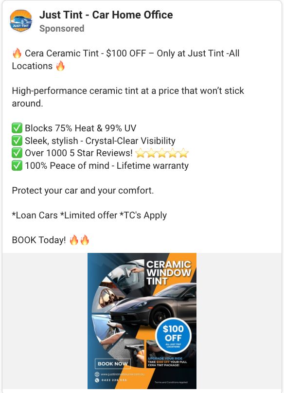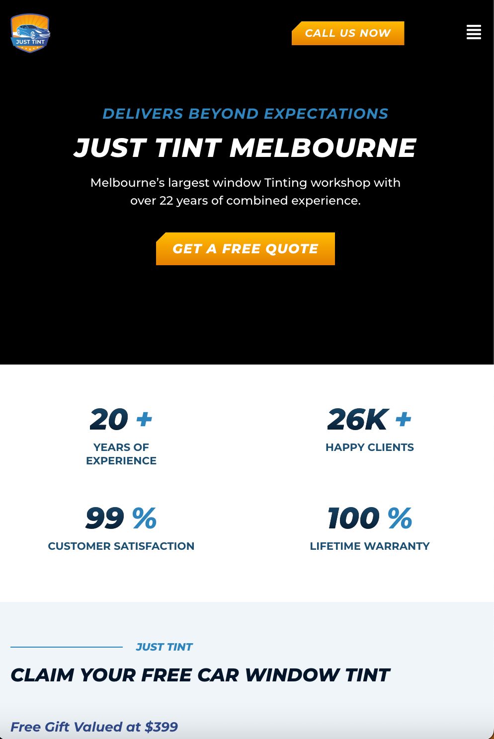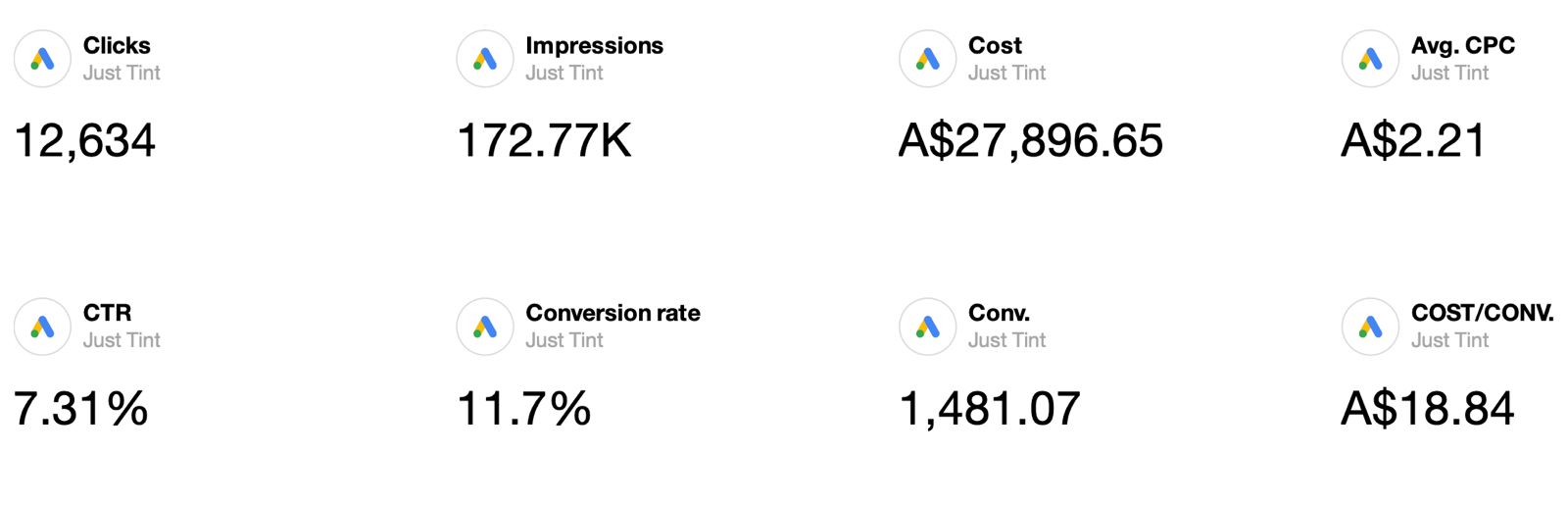 Just Tint, a Melbourne-based tinting service, wanted to dominate the car window tinting space across multiple suburbs. Despite decent brand awareness, they lacked consistency in lead generation and had no clarity on return from ad spend.